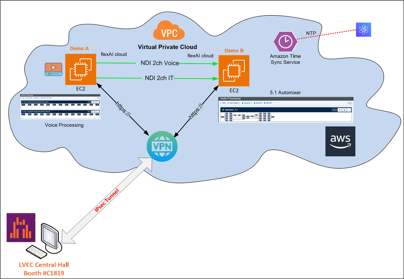 We successfully showcase an active demo system hosted on AWS, allowing you to experience seamless audio processing directly through a secure tunnel connection via the Internet. All processing happens entirely in the cloud, leveraging the power and scalability of public cloud to ensure top-tier performance.
